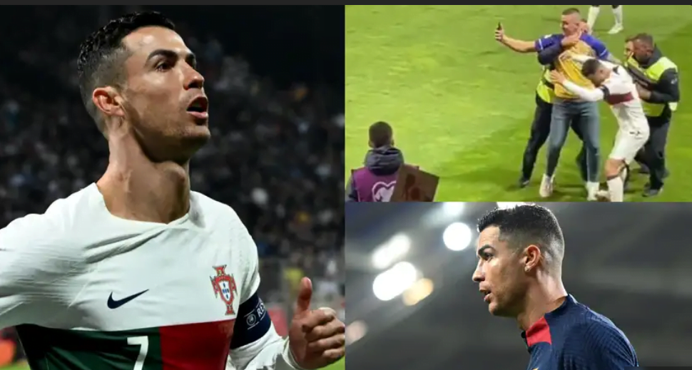 In a shocking turn of events during a Euro 2024 qualifier match, Cristiano Ronaldo, the renowned Portuguese footballer playing for both Portugal and Al-Nassr, was left in pain after a pitch invader attempted to take a selfie with him. The incident, which occurred during an intense match, not only posed a threat to Ronaldo’s safety but also raised concerns about the security measures in place. In this article, we delve into the details of this incident and its implications for both Ronaldo and the football community.