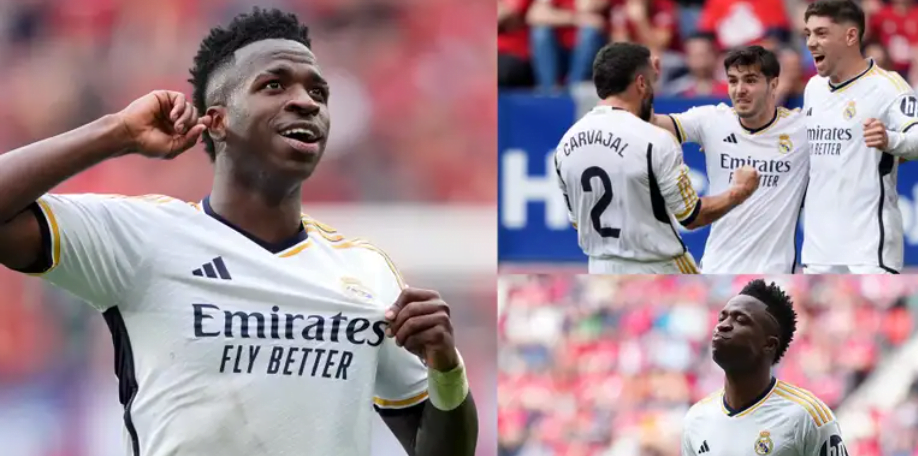 Real Madrid secured a crucial victory against Osasuna, with young talent Vinicius Junior showcasing his prowess on the field. Stepping up in the absence of Jude Bellingham, who was sidelined due to a ban, Vinicius delivered a stellar performance that propelled Los Blancos ever closer to clinching the La Liga title.